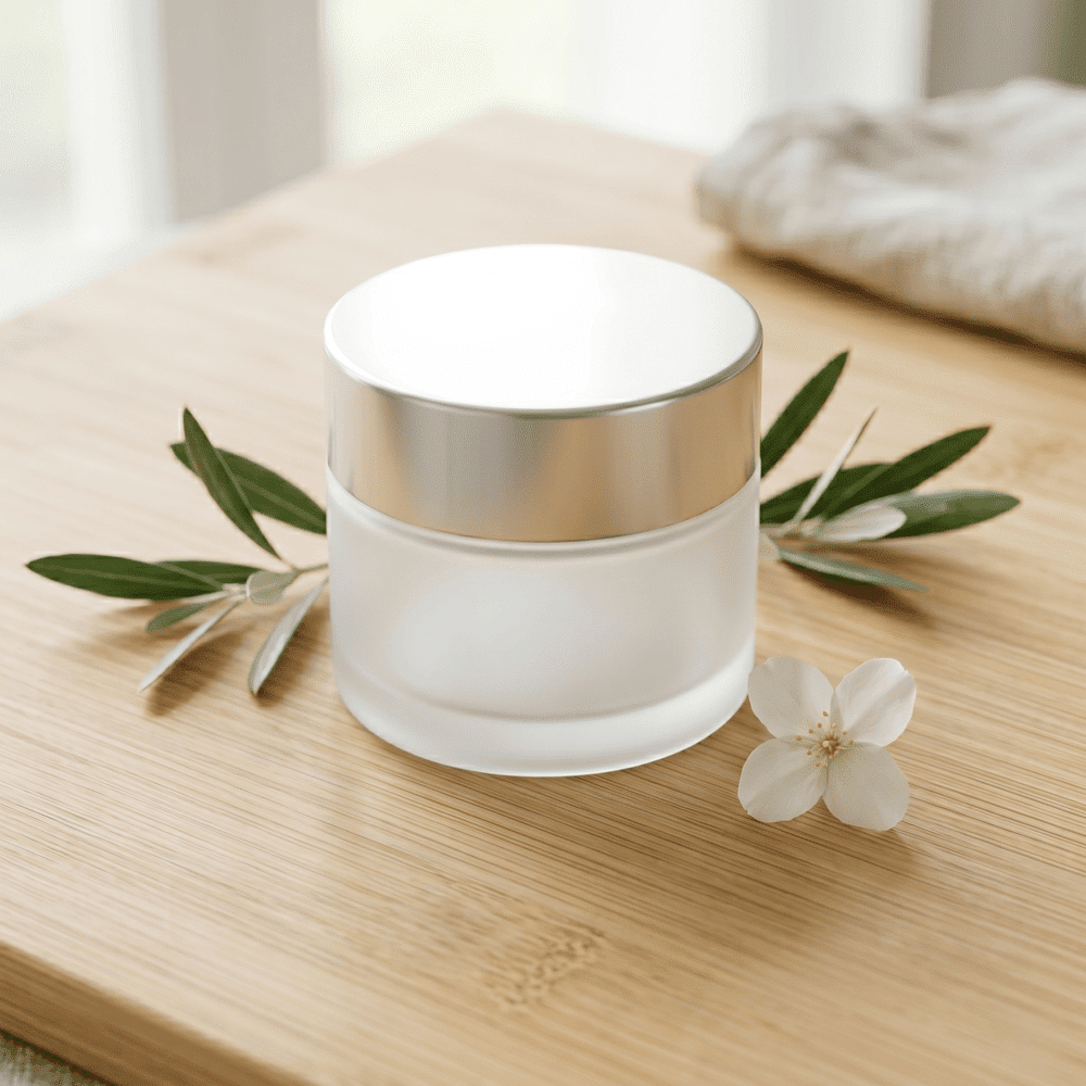 צנצנת זכוכית חלבית בנפח 100 מ״ל, פתרון אריזה איכותי למוצרי קוסמטיקה וטיפוח טבעיים.